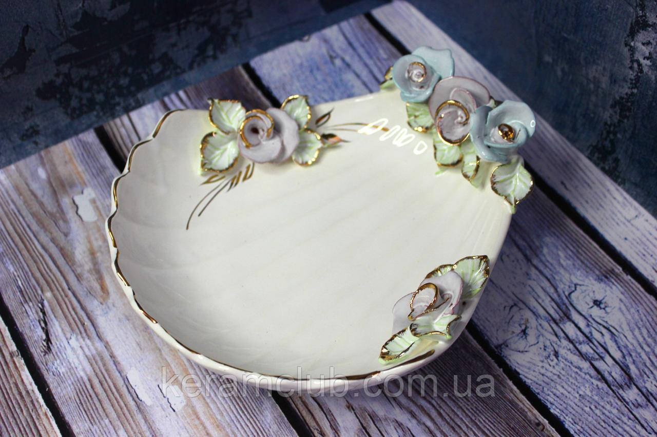 Елегантна цукерка, виготовлена з кераміки у формі мушлі з декором. Цукерниця — це корисний предмет сервірування чайного столу. Оригінальний модний подарунок.